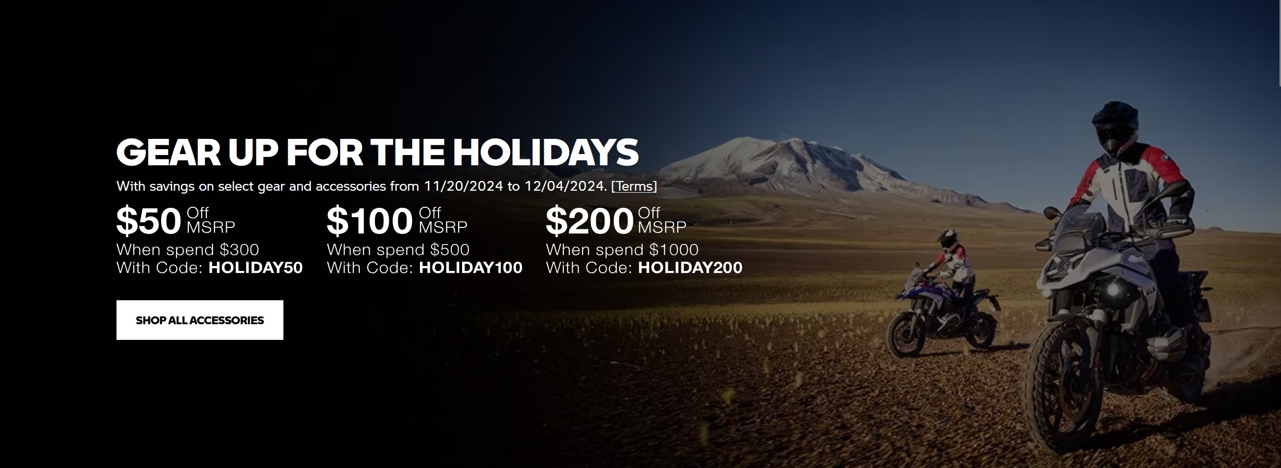 Shop online or visit your local BMW Motorrad dealer to grab these limited-time offers and Make Life a Ride. *Terms and conditions below apply! - All items available while supplies last.